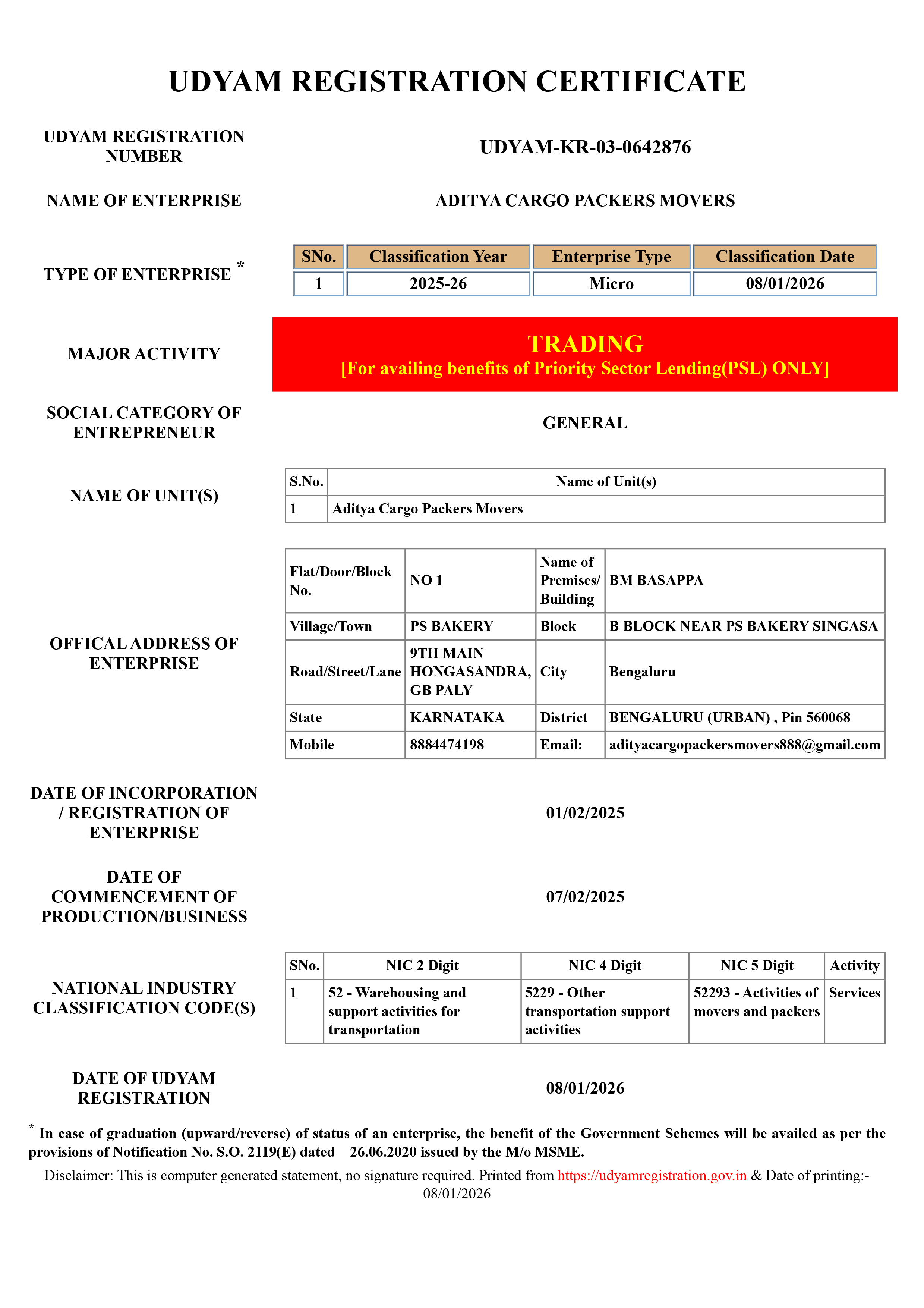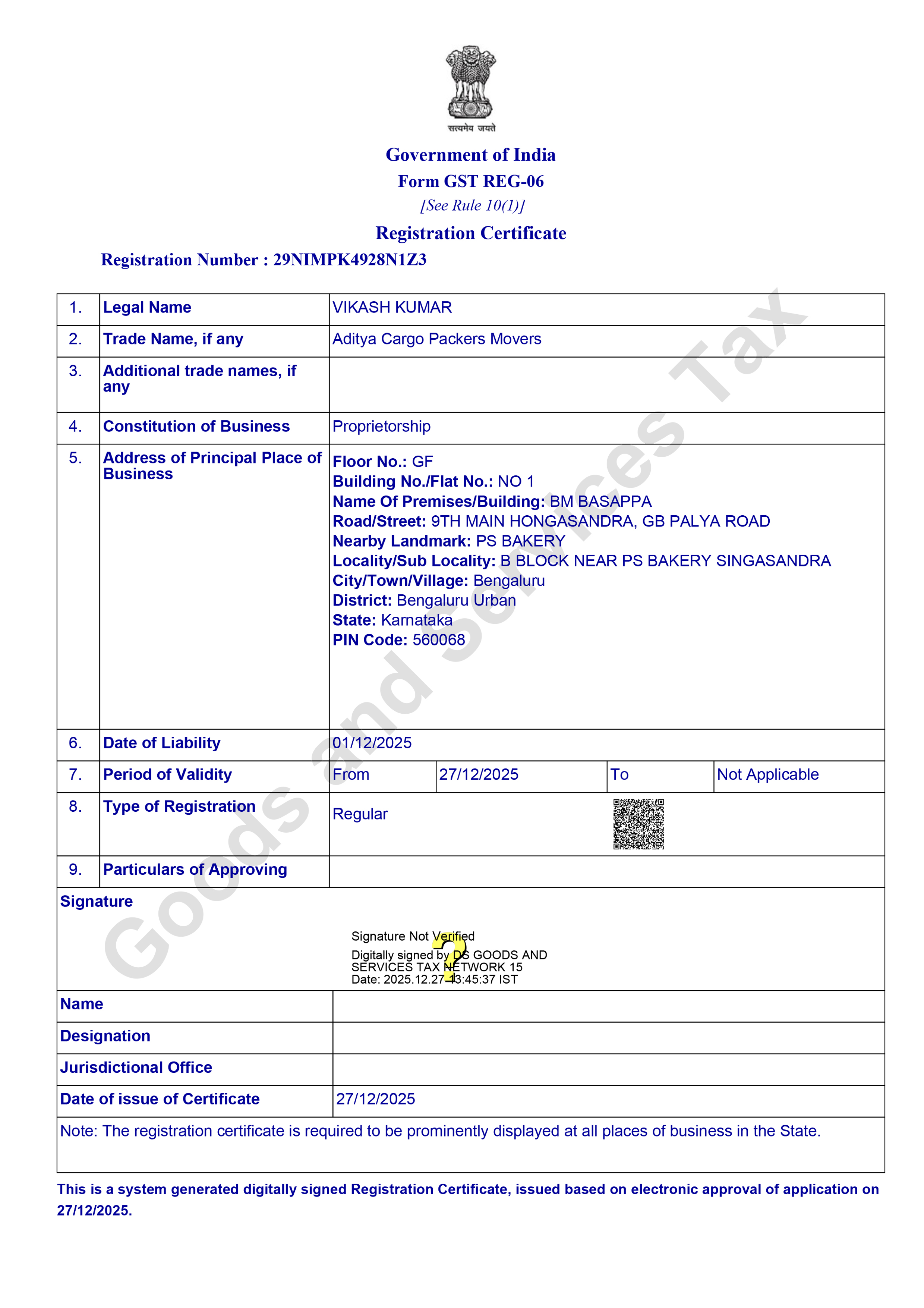 Aditya Cargo Packers and Movers is a well-known name in the relocation and logistics sector in Bangalore, providing reliable and efficient packing and moving solutions for individuals, families, and businesses. With a strong focus on customer satisfaction, the company aims to make the process of moving homes or offices smooth, organized, and stress-free. Based in Bangalore, Aditya Cargo Packers and Movers offers a comprehensive range of services, including household relocation, office shifting, local and domestic moving, vehicle transportation, packing and unpacking, loading and unloading, and warehousing solutions. Their team is trained to handle all types of goods, from delicate household items to heavy office equipment, using appropriate packing materials and modern handling techniques to minimize the risk of damage.